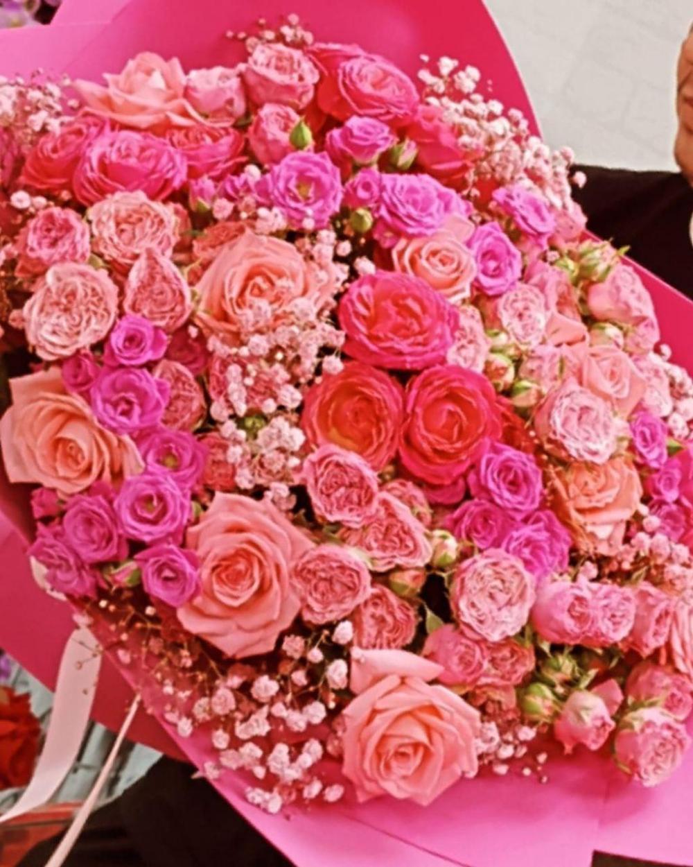 Букет из кустовой розы с гипсофилой